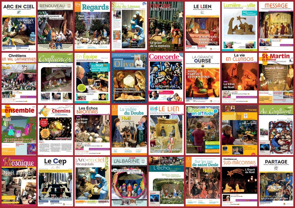 L'AEPP vous souhaite une très belle fête de l'Épiphanie et une bonne et sainte année 2018 ! Nous avons rassemblé pour vous une série de Unes des journaux paroissiaux de notre zone. Saurez-vous repérer les photos identiques ? Indice : sur la grille à 77, il y en a plus que sur celle à 32...